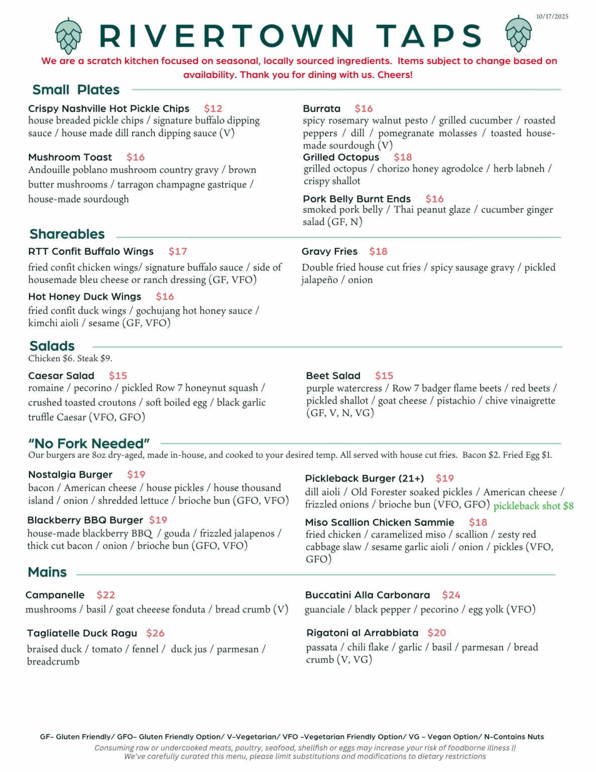 UNTAPPED MENU